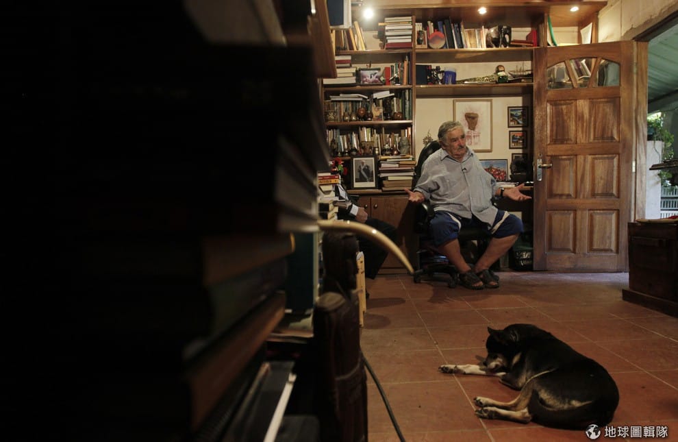 烏拉圭總統穆西卡站在自家「總統官邸」中,他的生活情況讓人乍看很難相信是一位總統。
