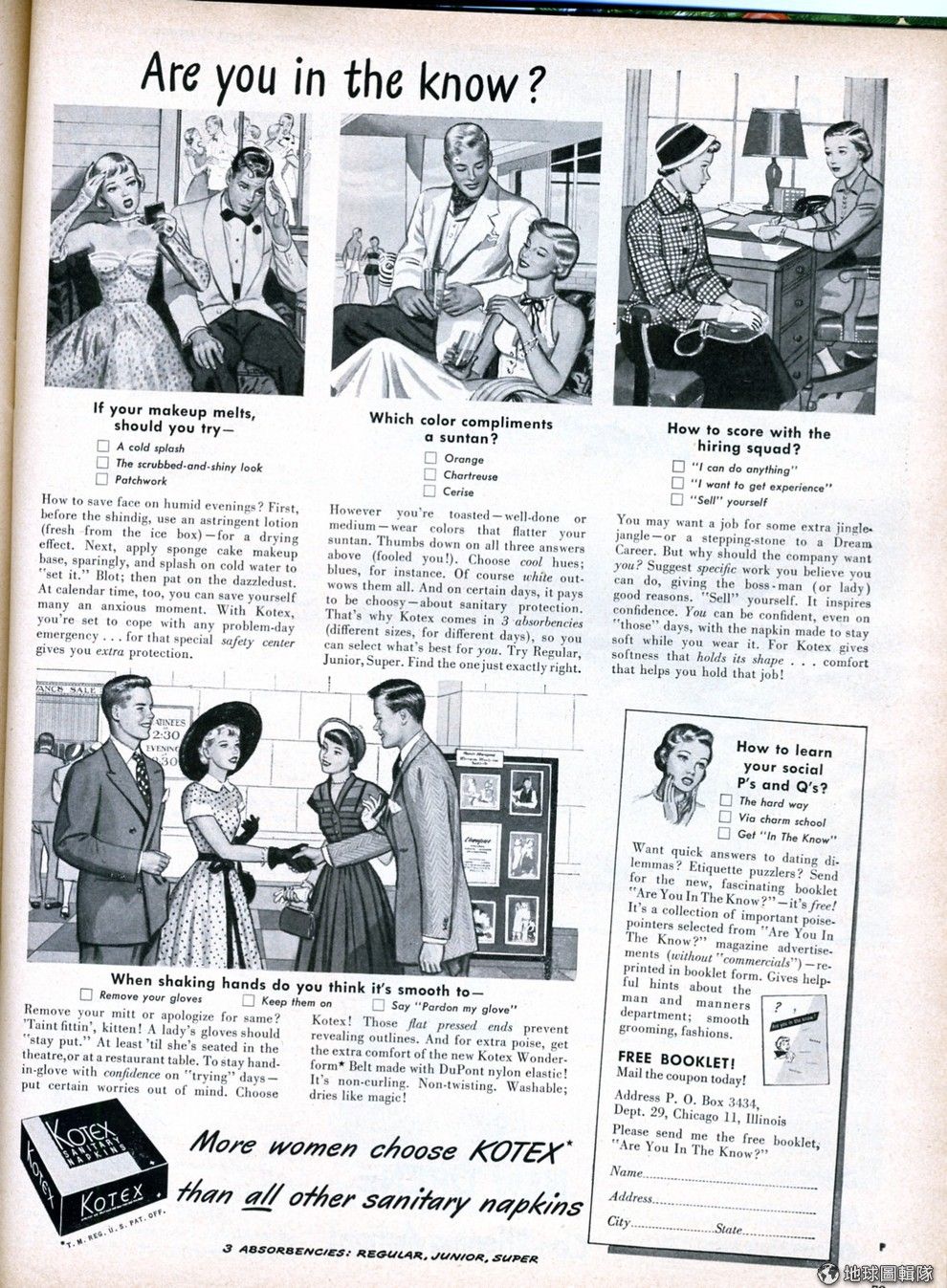 1920年,在美國威斯康辛州的尼納(Neenah),一間小木屋中開始有女性工人用手工的方式做出衛生棉。這項產品的名字就叫「靠得住」(Kotex,名稱摘自cotton texture),這項每位女性都相當熟稔的商品就在停戰後兩年的10月正式與大眾見面。