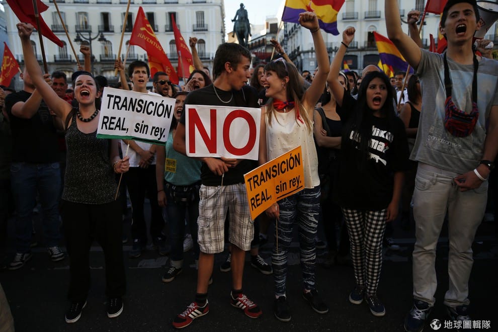 路透社上星期,西班牙現任國王胡安·卡洛斯一世宣布退位將王位傳給兒子菲利普。然而,西班牙有許多人不滿這個決定,在上個星期六(7),就有數千名民眾聚集在西班牙首都馬德里(Madrid)示威抗議,要求辦公投廢除西班牙的君主制,轉為共和政體。