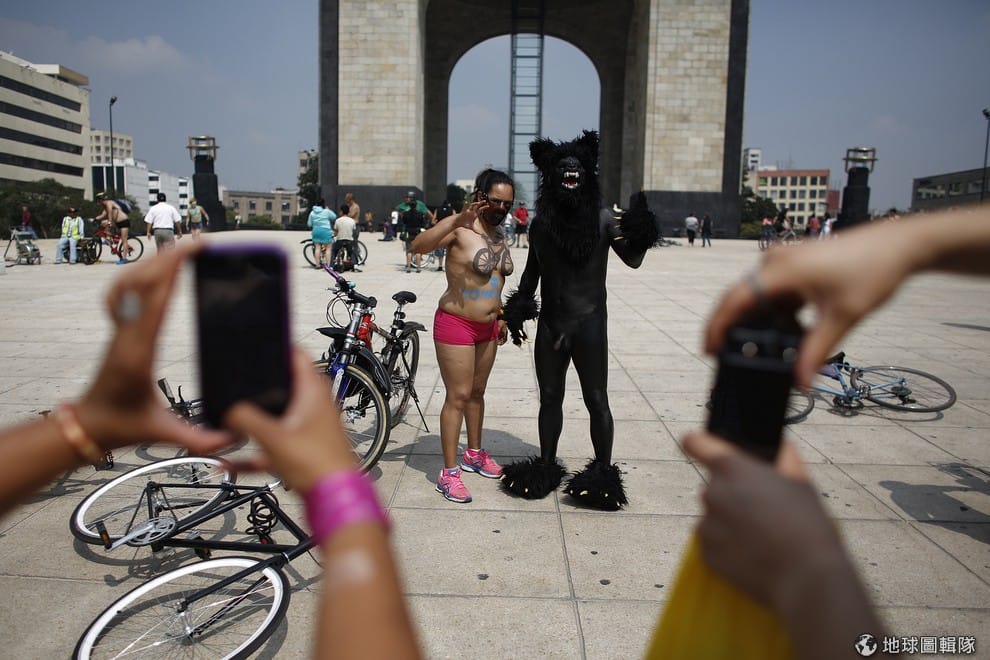 路透社參加裸體單車活動的民眾通常都相當大方地接受拍照。