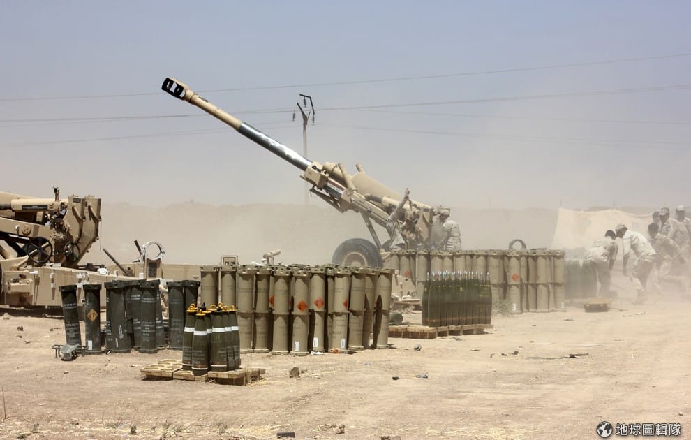 在和ISIL的衝突中,伊拉克安全部隊發射砲彈。
