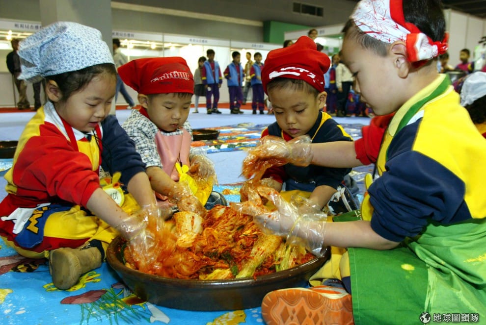 gettyimages泡菜對許多台灣人來說是美味的配菜,那刺激食慾的艷紅色、還有酸辣得過癮的風味,都讓泡菜在我們的餐桌上越來越常見。尤其冬天一到,泡菜豆腐鍋、海帶芽泡菜、蘿蔔泡菜……都讓人食指大動。另方面,對韓國民眾來說,泡菜更是「國民美食」代表,一碗白飯、一罐泡菜就可以吃好幾餐!韓國小朋友從小就已經在體驗泡菜的重要性了。圖片來源:Chung Sung Jun/Getty Images