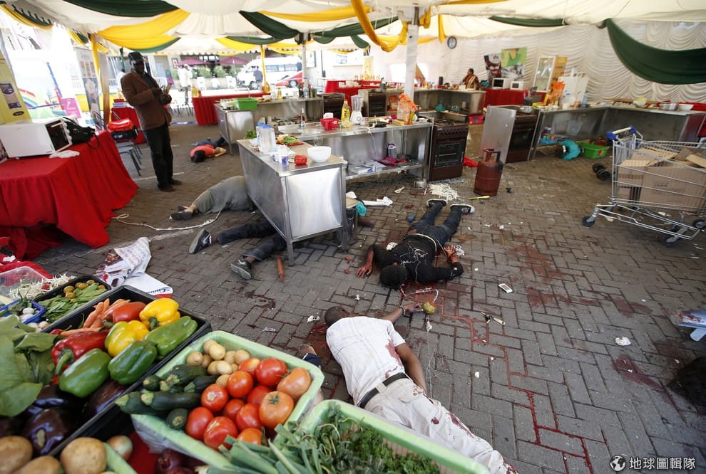 繼續閱讀西門購物中心裡有許多死者的屍體倒在地上。青年黨在2013年連續劫持肯亞的西門購物中心4天,造成67人死亡。