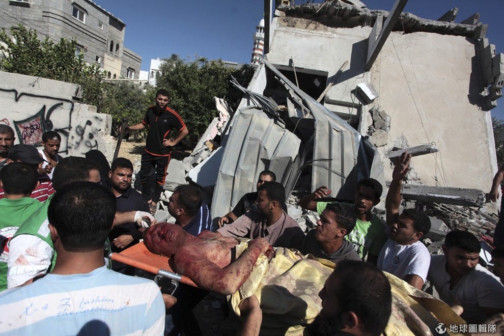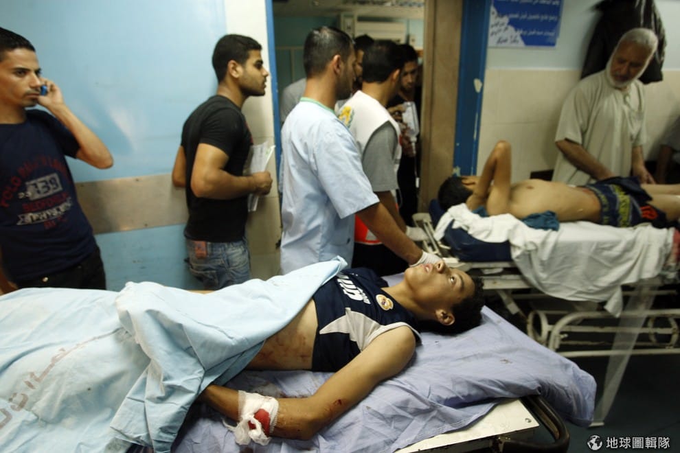 加薩地區的醫院內擠滿因空襲波及而受傷的民眾。