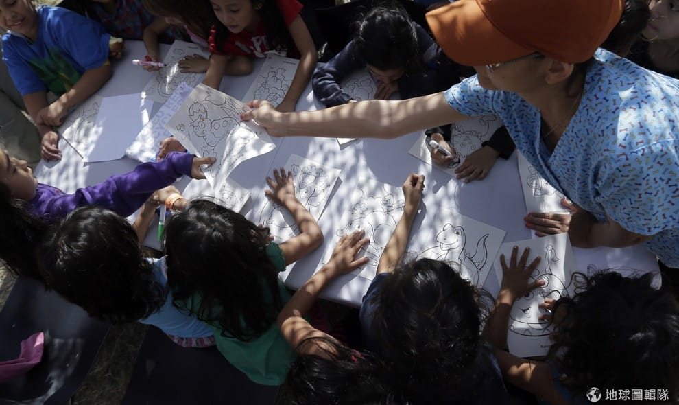 路透社在德州收容中心裡畫畫的中美洲孩童。