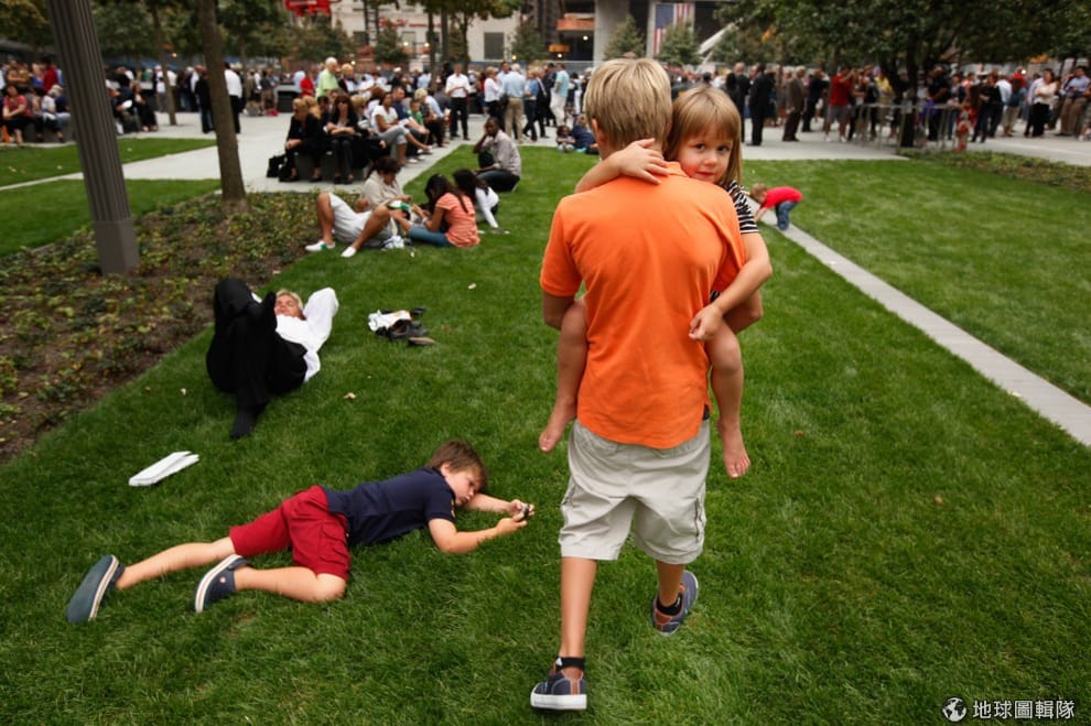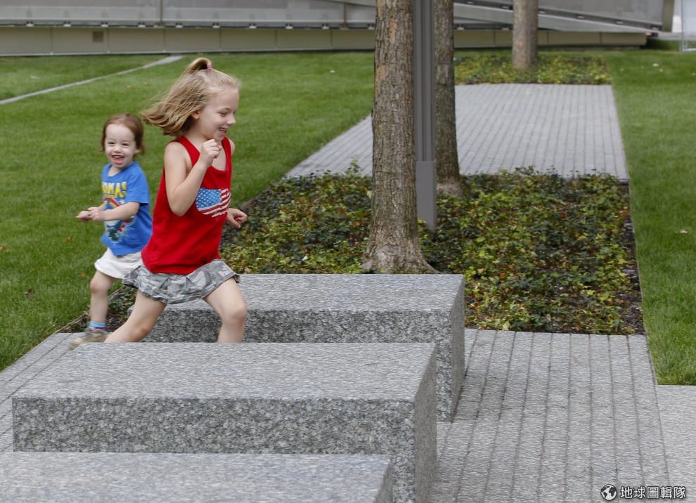 gettyimages小女孩正在911紀念公園內玩耍,她們的姨丈在911事件中喪生。圖片來源:2011/09/12;Mike Segar-Pool/Getty Images。