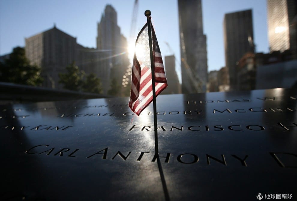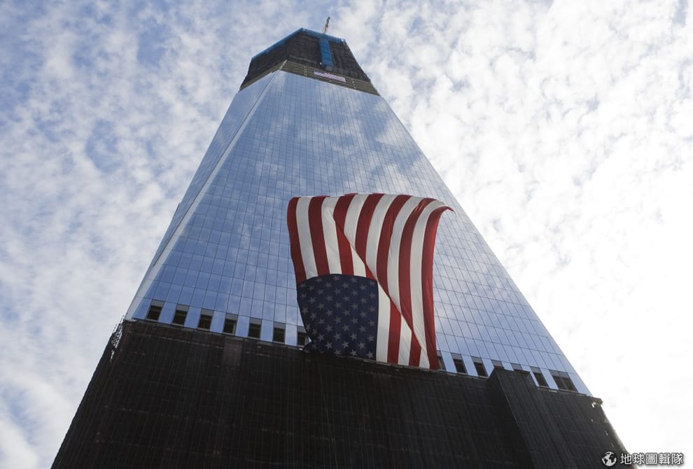 gettyimages飄揚的美國國旗和世貿1號樓。圖片來源:2011/09/11;Kristoffer Tripplaar-Pool/Getty Images