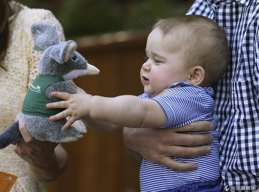 路透社參觀雪梨動物園的喬治小王子。他接下院方準備的小禮物,是一隻以他命名的兔耳袋狸(Bilby)。
