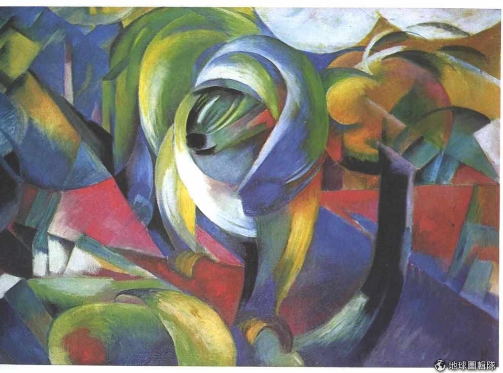 傑出的表現主義天才畫家,法蘭茲.馬克(Franz Marc,1880-1916),不幸在第一次世界大戰中死亡,他在世時以那雙極富透視眼光的雙眼重新建構出自然萬物,他的畫作同時捕捉了20世紀年輕世代興奮靈魂的碎片和火熱的色彩條紋。但是,他卻在36歲時死於「西線的戰事」,現代藝術的發展就此痛失一位偉大的現代藝術巨人。