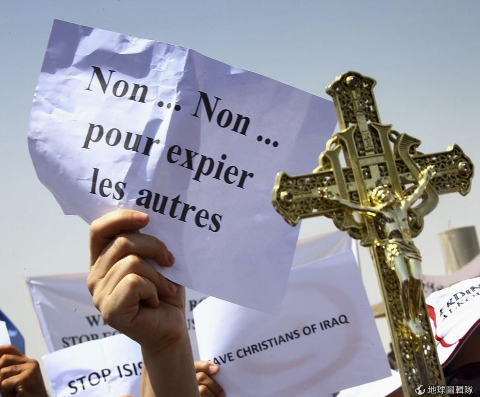 照片是抗議ISIL組織迫害基督徒的伊拉克民眾。