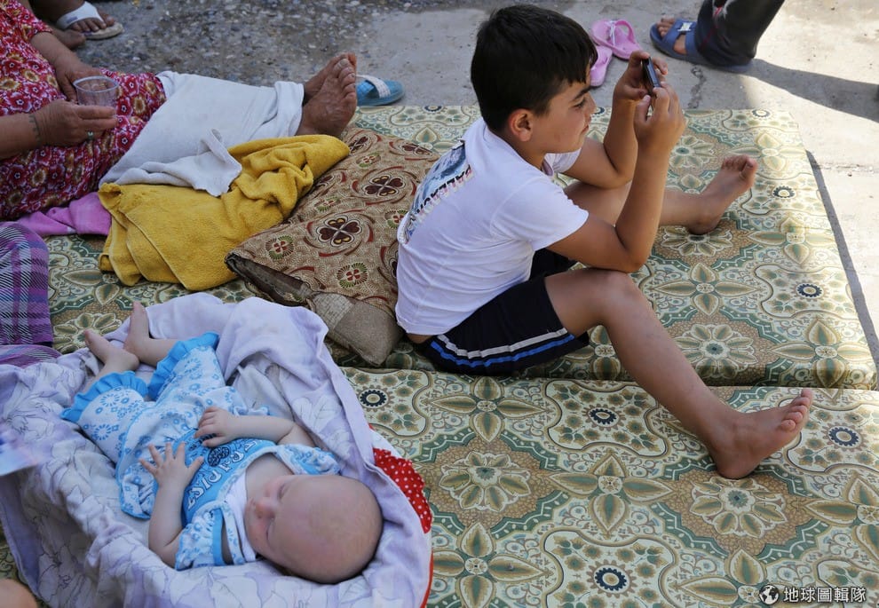 照片是被迫逃離摩蘇爾城家園的基督徒難民嬰兒(左)和孩童(右),他們暫時住在一所學校裡。