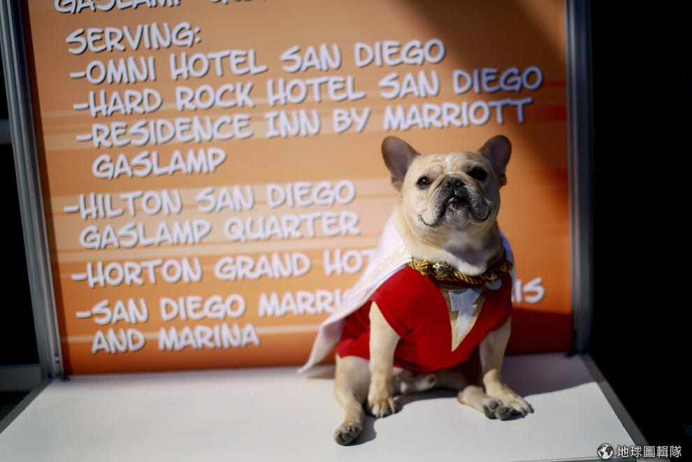 路透社變裝成超人Shazam的狗狗現身會場。