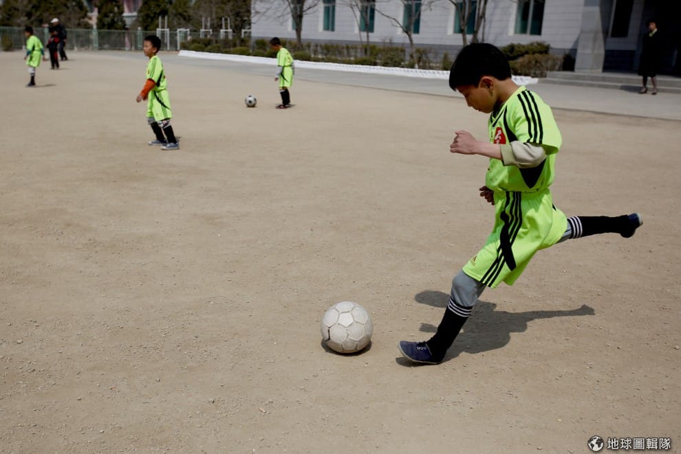 小學裡面正在踢足球的男孩。圖片來源:Feng Li/Getty Images