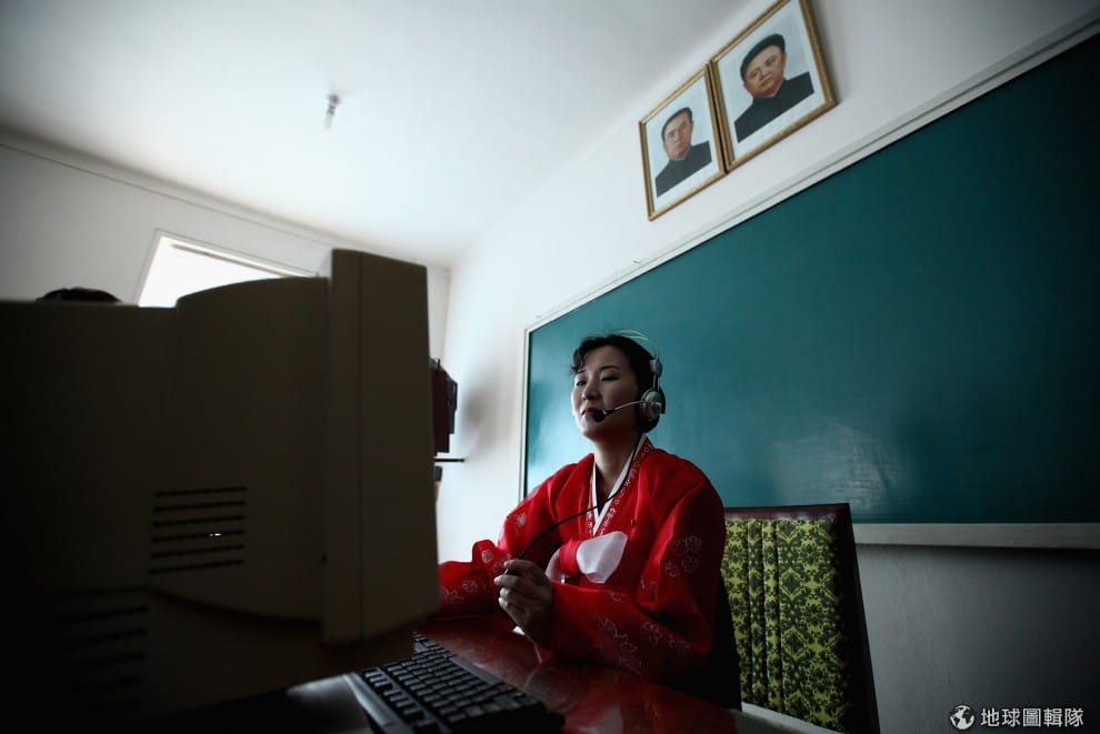 平壤當地的小學,穿著傳統服裝的老師正在教大家用電腦。圖片來源:Feng Li/Getty Images
