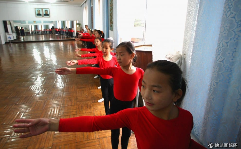 選修芭蕾舞課的學生們。(以前都以為舞蹈衣就是粉色系為主等等,但看到北韓的照片後,發現這邊把大紅色運用的到處都是耶!)圖片來源:Alexander Hassenstein/Getty Images