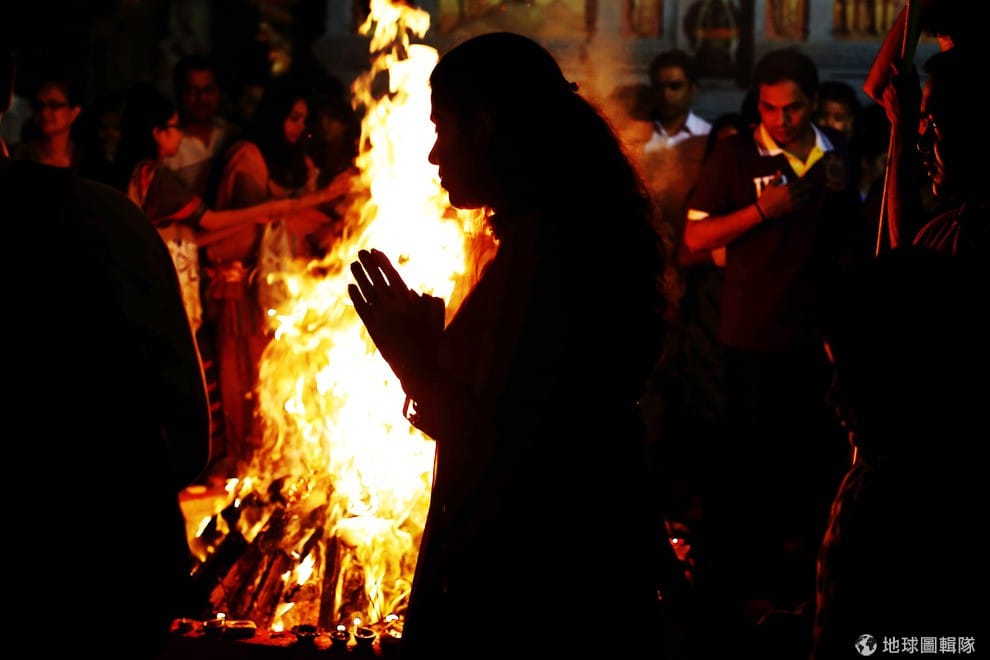 色彩節的前一天傍晚,新加坡當地的印度人開始舉行燃燒Holika的儀式。象徵告別冬季迎接春天!Suhaimi Abdullah/Getty Images