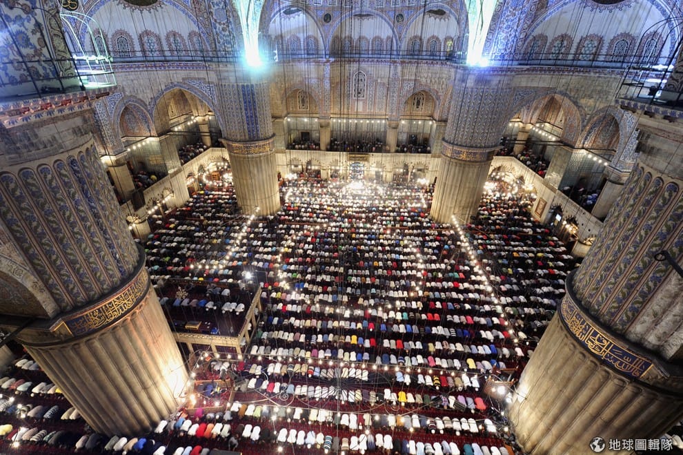 伊斯蘭教信眾在土耳其當地相當著名的鄂圖曼時期的蘇丹阿密清真寺(Ottoman-era Sultanahmet)中祈福,這座清真寺也被稱為藍色清真寺。