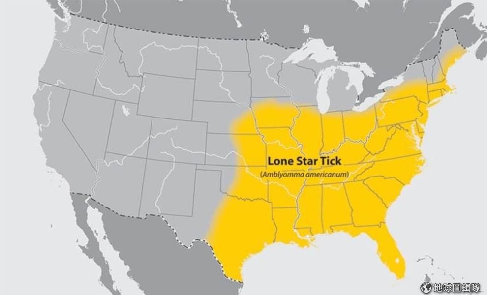 美國境內的孤星虱多分布在東岸和南方區域一帶。 Photo credit: wikicommons