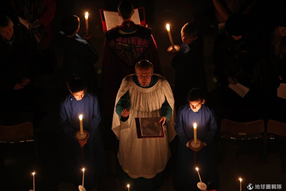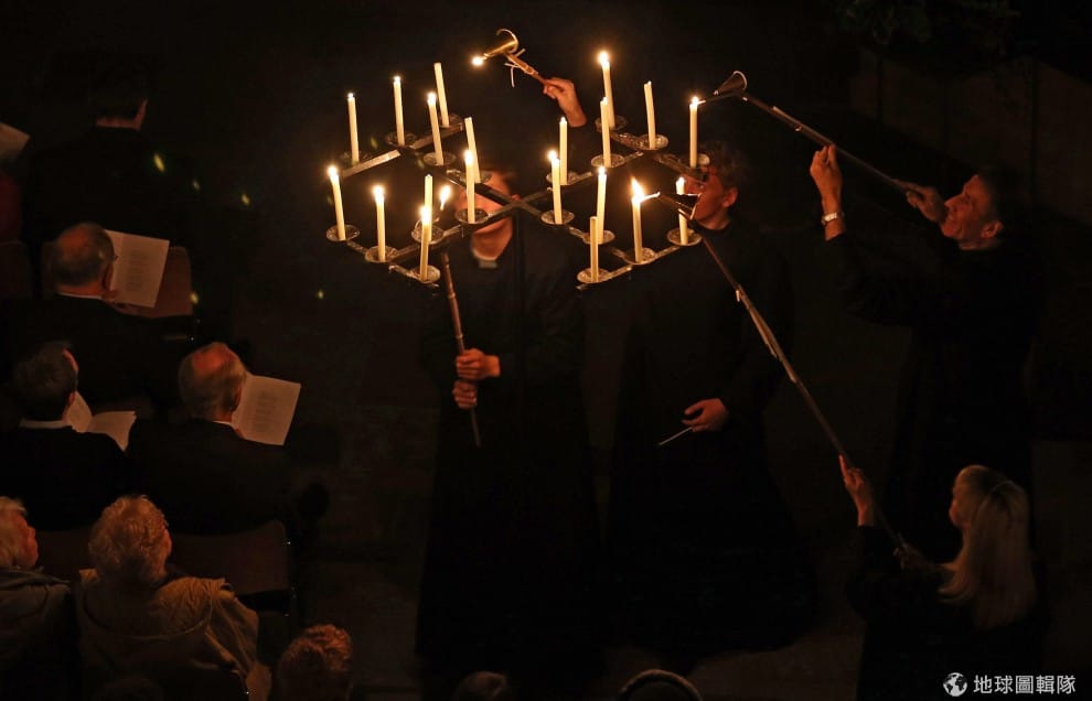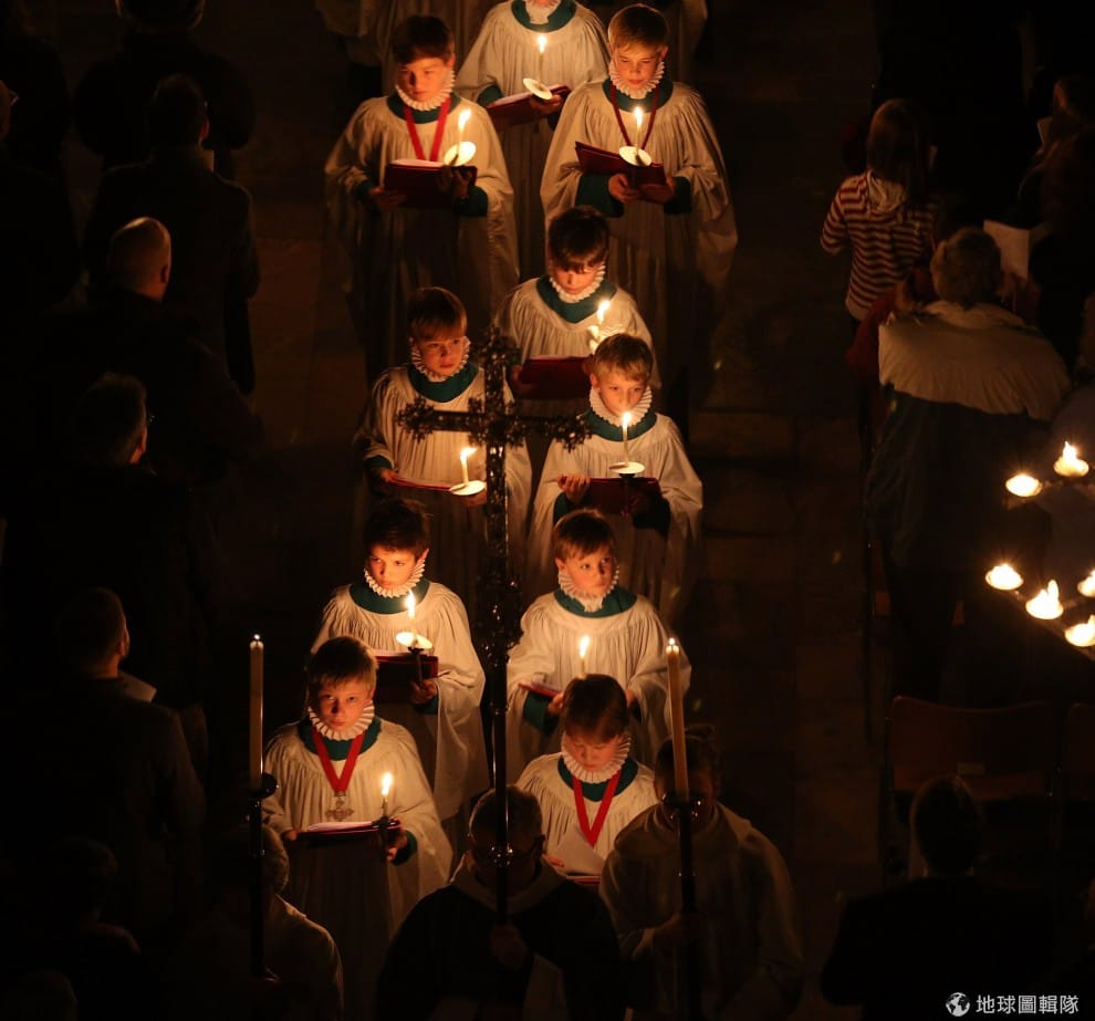 點點燭光亮起的時候,拿著燭火的合唱團也會開始在教堂內行走,傳遞光芒。圖片來源:Matt Cardy/Getty Images