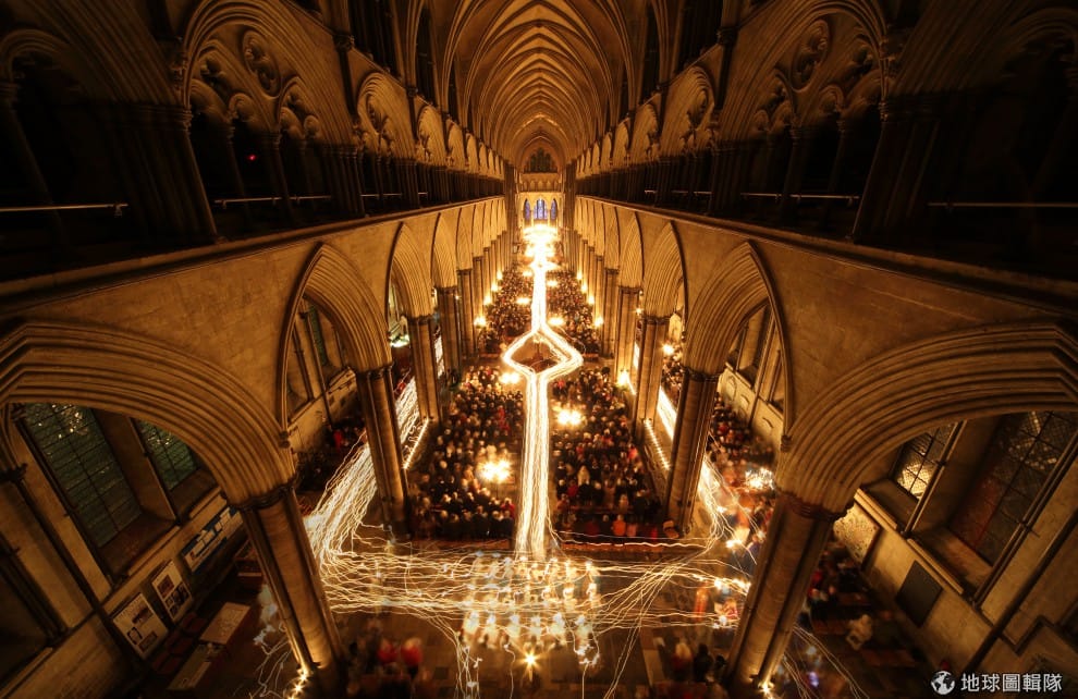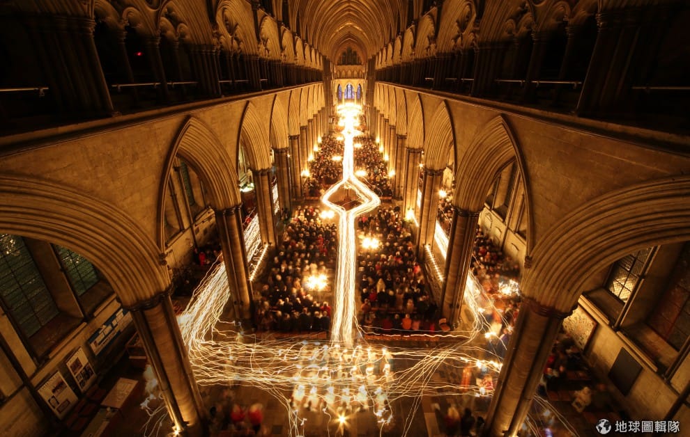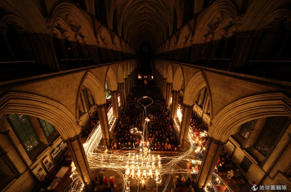 攝影師特別的捕捉了合唱團行走的路線,讓燭光呈現出華美的景象。圖片來源:Matt Cardy/Getty Images