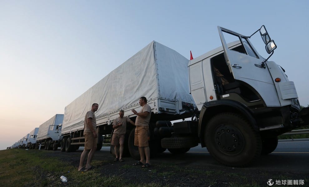 從俄國出發,載有救援物資的卡車。