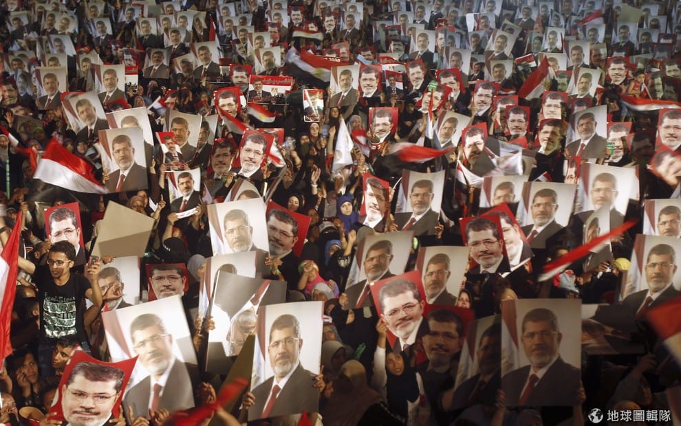 照片中是埃及前總統穆爾西,他有著大學教授、工程師背景,也是埃及歷史上第一位代表伊斯蘭勢力(指穆斯林兄弟會)、沒有軍方背景的總統,更是埃及第一位經由民主選舉產生的總統,但他因為無法解決埃及許多社會問題引起民怨,最後因為軍事政變下台。