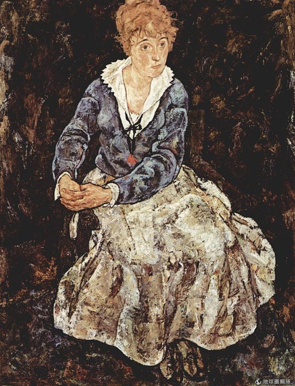 這幅作品是席勒為他的妻子愛迪絲·漢斯(Edith Harms)所畫的肖像畫,創作於1918,目前藏於奧地利美景宮美術館(Österreichische Galerie Belvedere)。photo credit: 維基百科