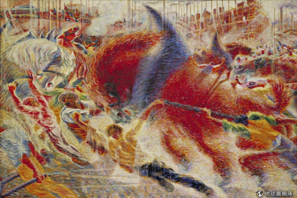 這幅作品叫做《城市的興起》(The City Rises),描繪了外在世界的變動性,創作於1910年,收藏於紐約現代藝術博物館(Museum of Modern Art,簡稱MoMA)。photo credit: 維基百科