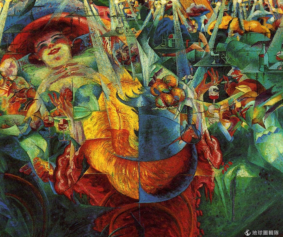 這幅左上角有位開懷大笑女士的作品叫做《笑》(The Laugh),創作於1911年。未來主義後期的藝術家走向機械人概念發展,展現人類情緒「笑」的多變和機械性造型之間的衝突感。Photo credit: 維基百科
