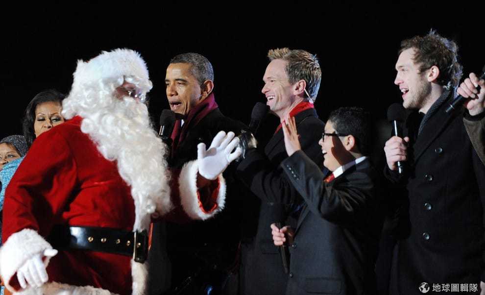 美國總統歐巴馬、以及許多知名歌手演員例如Neil Patrick Harris、Rico Rodriguez、Phillip Phillips都來跟聖誕老人同歡。 圖片來源:Olivier Douliery-Pool/Getty Images