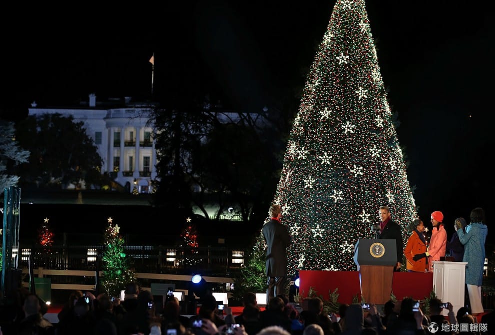 白宮的橢圓廣場上,國家聖誕樹的燈火點亮囉!圖片來源:Mark Wilson/Getty Images