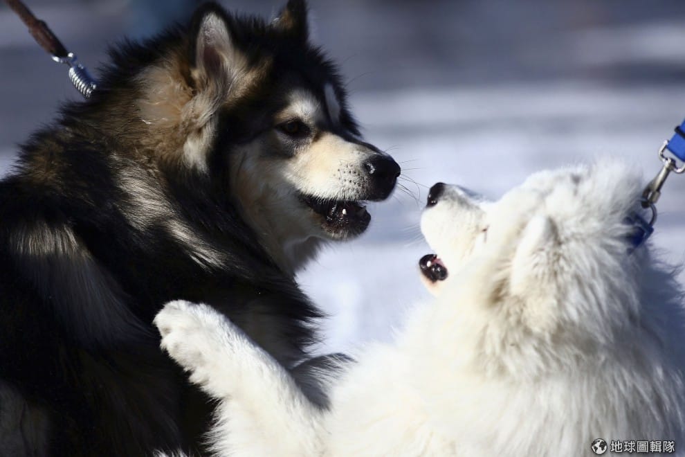 gettyimages大陸吉林省的哈士奇狗狗毛好蓬!兩隻雪橇狗正在玩耍中。圖片來源: China Photos/Getty Images
