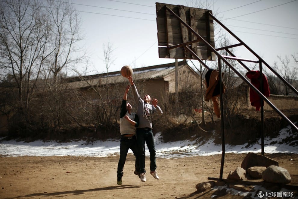 甘肅省的少年正在戶外玩球