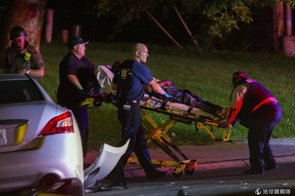 路透社抗議期間發生轎車衝撞救護車的事件,員警將受傷民眾送醫。