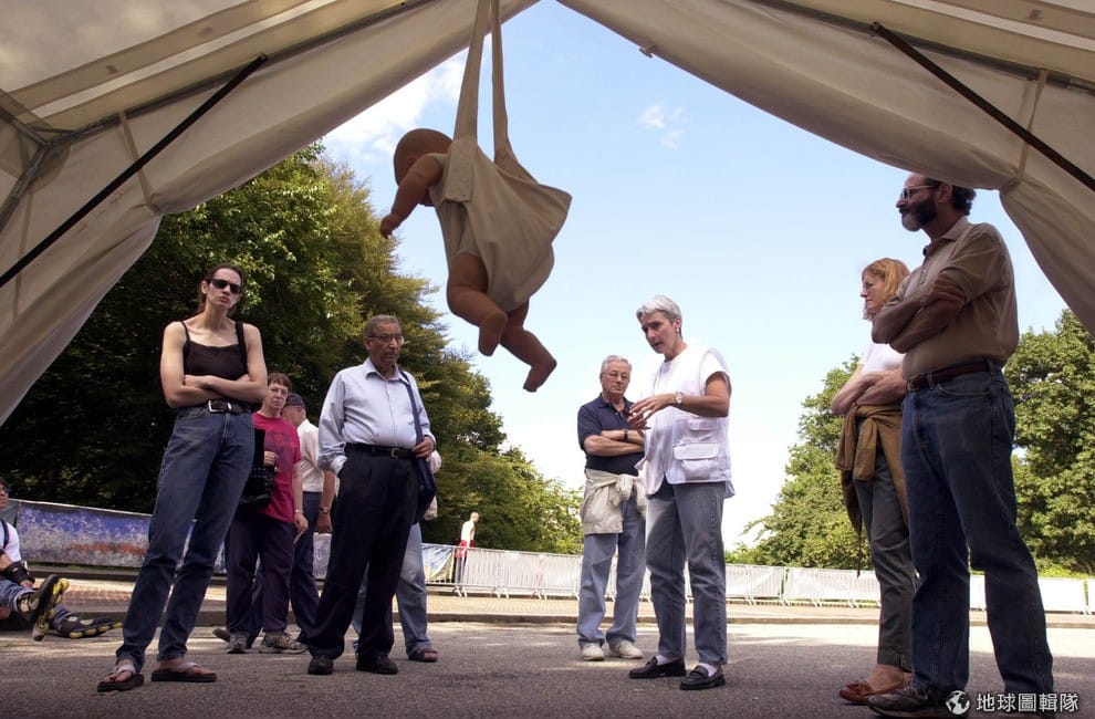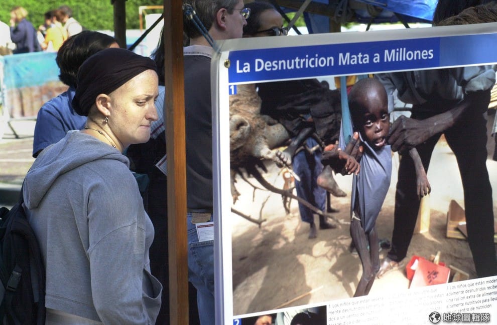 gettyimages組織在去年也在紐約當地舉辦飢荒議題的展覽,照片中的醫生正在向參觀民眾解釋第三世界兒童飢荒的狀況。 圖片來源:Spencer Platt/Getty Images
