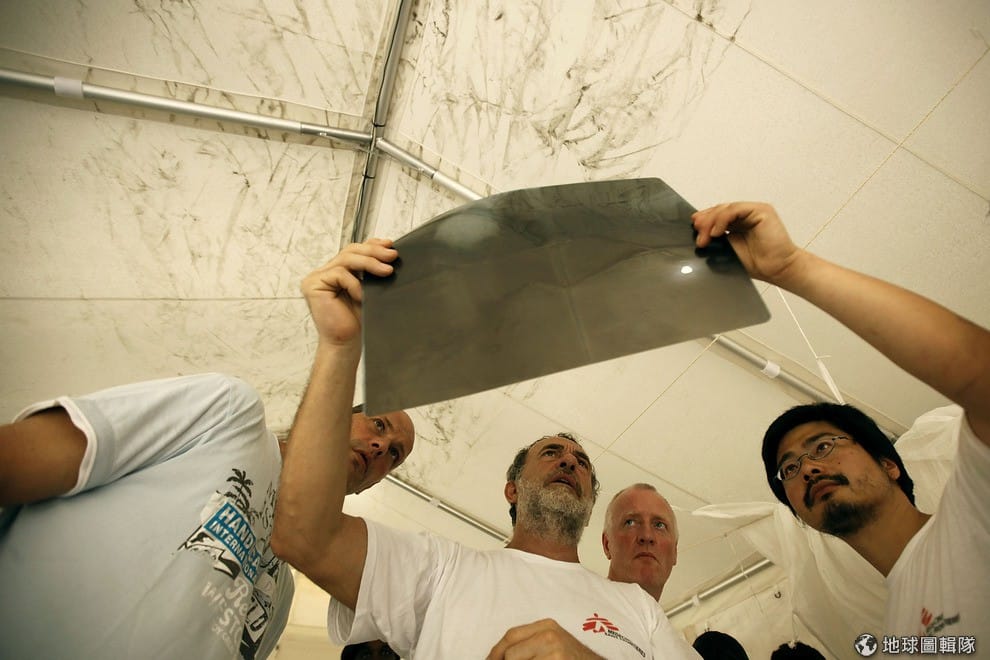 來自義大利的外科醫生「帕斯奇尼」(Alvise Pasquini)正在看著病患的X光片,海地一場芮氏規模7.0的地震,奪走20萬條人命,並讓120萬人流離失所。醫生們趕到當地救助這些急需幫助的病患。圖片來源:Chip Somodevilla/Getty Images