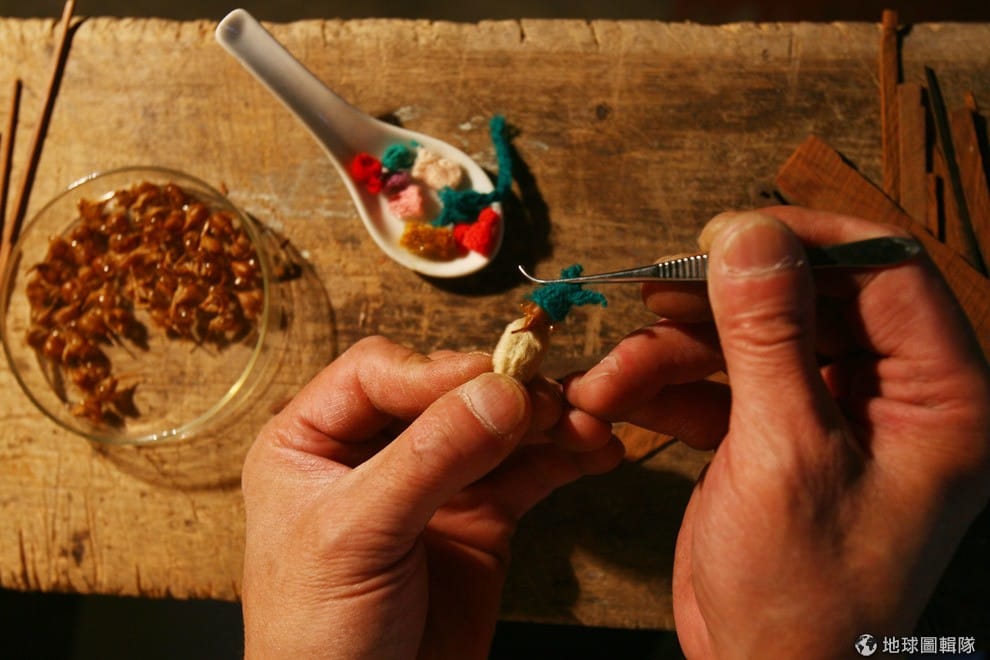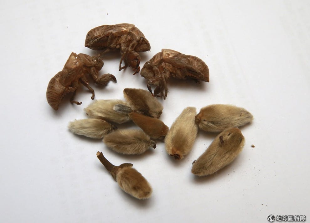 路透社準備好用來做毛猴的材料──蟬殼和玉蘭花苞。