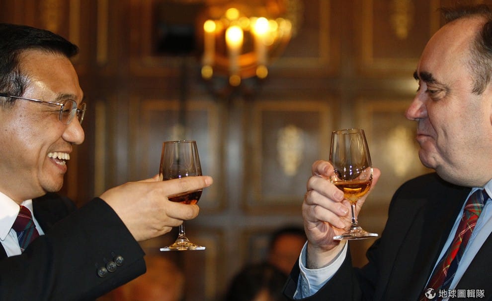 李克強和蘇格蘭首長薩蒙德共同舉杯暢飲威士忌