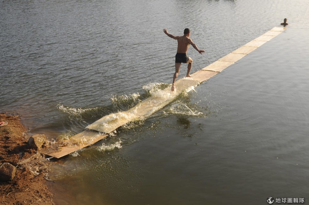 少林寺僧侶正在練習輕功水上漂