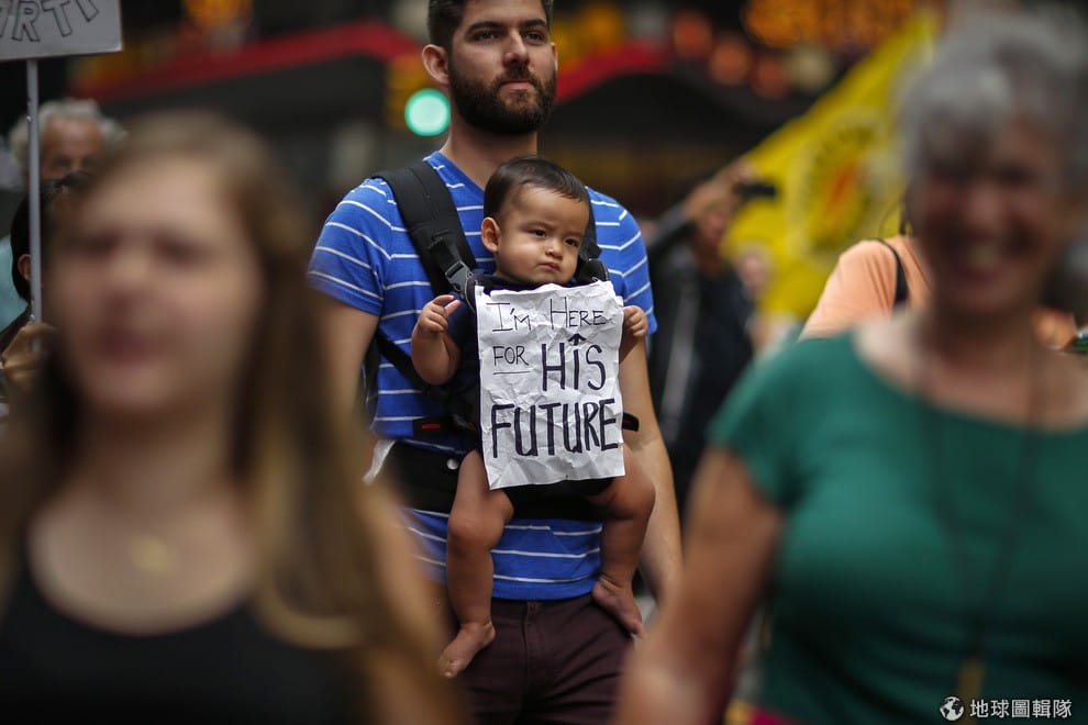 路透社小朋友手上的標語寫著:「我在這裡是為了他的未來。」