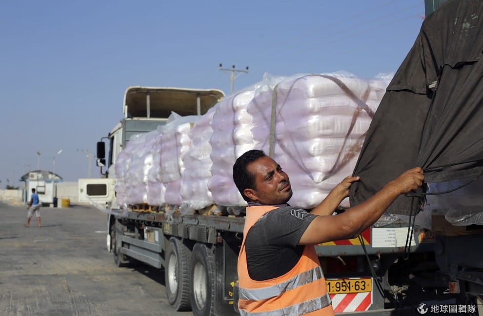 巴勒斯坦人在加薩走廊的邊界崗哨,確認貨車上載的貨物。
