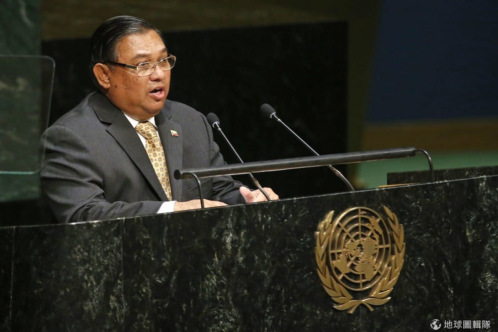 緬甸的外交部長吳溫納貌倫(Wunna Maung Lwin)在聯合國大會上發表演說。