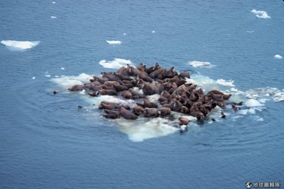 北極區的太平洋海象找不到可以休息的浮冰,只能成群結隊游向西北方的阿拉斯加一帶,結果當地出現了非常驚人的景象。