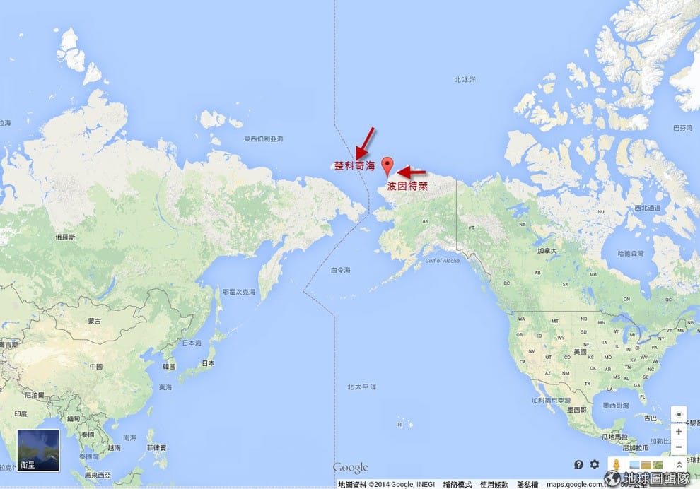 這次發現海象群聚現象的就是圖中箭頭所指的波因特萊地區,另個箭頭所指的楚科奇海域則是海象每年夏天會搭上浮冰的地方。
