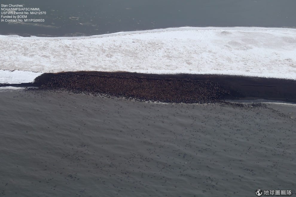 上周六(9/27)時,美國國家海洋暨大氣總署(NOAA)就觀察到,至少有3.5萬隻的海象現身在阿拉斯加北區的波因特萊(Point Lay)當地,此區距離阿拉斯加最大城安哥拉治有1,126公里遠,主要居民是因紐特人。
