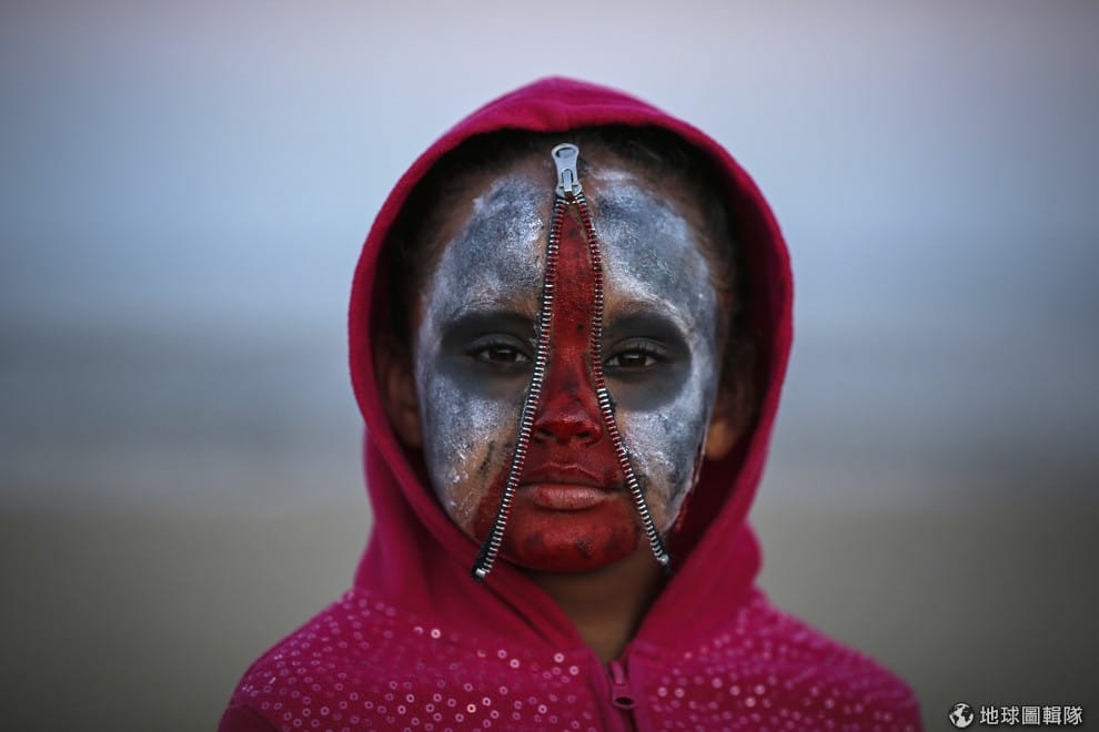 小朋友用拉鍊精心打扮成嚇人的殭屍。