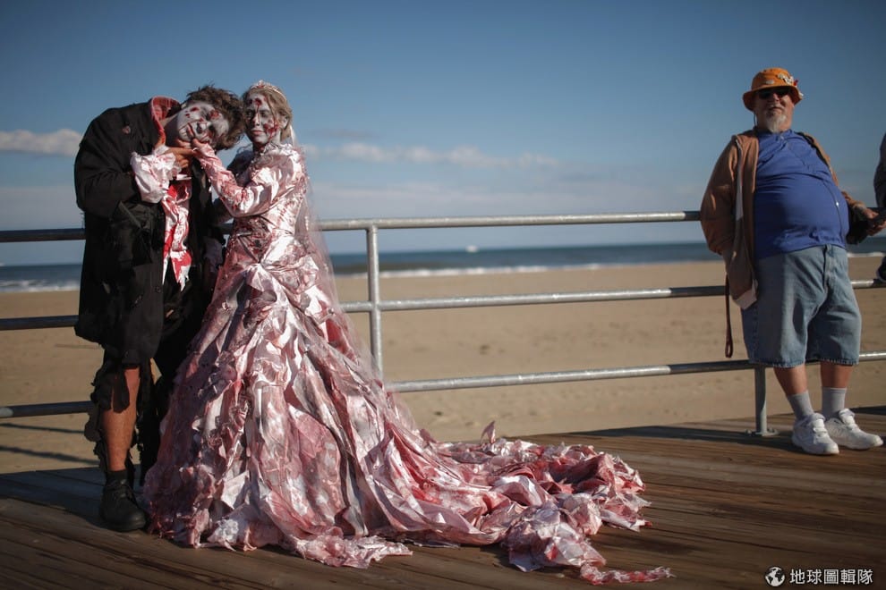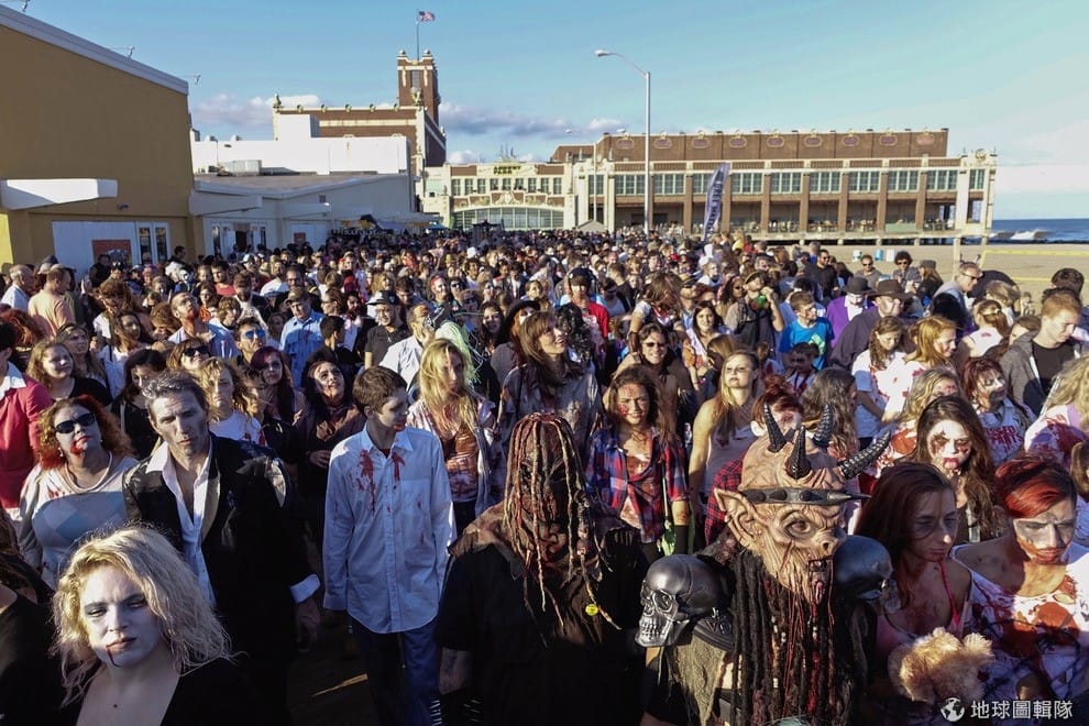 星期日(5)這天,美國紐澤西州的阿斯伯里帕克(Asbury Park)出現很嚇人的景象,數千名「血淋淋」的民眾一同拖著腳步前行,就連小朋友也是一臉「慘白」的跟著大人們緩緩前進,有趣的是,你會發現人人都是一臉開心的模樣。