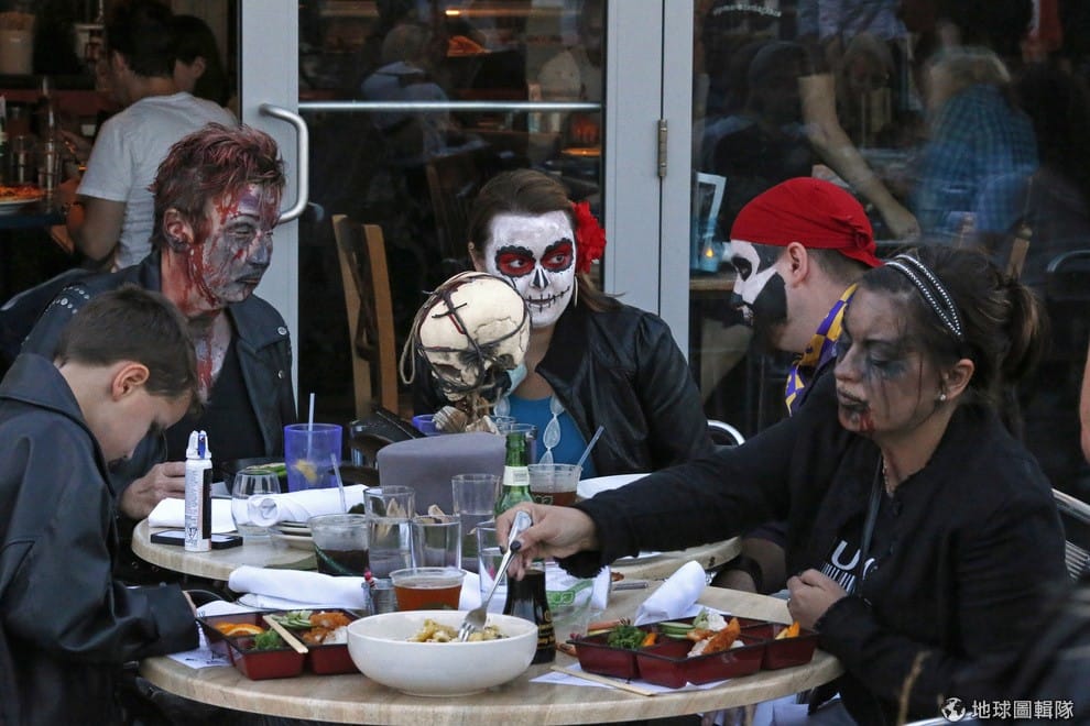 路透社活動當天,紐澤西當地餐館的顧客都非常不一樣,民眾帶著特殊化妝和道具直接用餐。