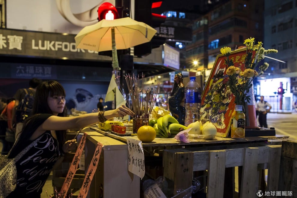 佔中陣營在旺角區的大街上架設了神壇