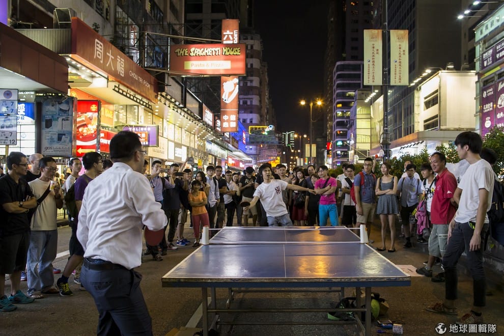 正在大街上打兵乓球的佔中民眾